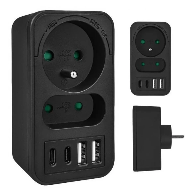 Gniazdko prądowe x2 + 4xUSB Maclean, rozgałęźnik z 2 gniazdami, 2xUSB A, 2xUSB C PD 20W, 1x16A + 1x6A, MCE249 F/B