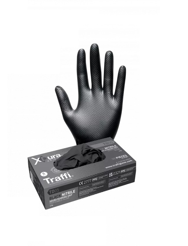 4. Rękawice jednorazowe, rozm. XL, 50Para szt., kolor: Czarny, Traffi 53.76