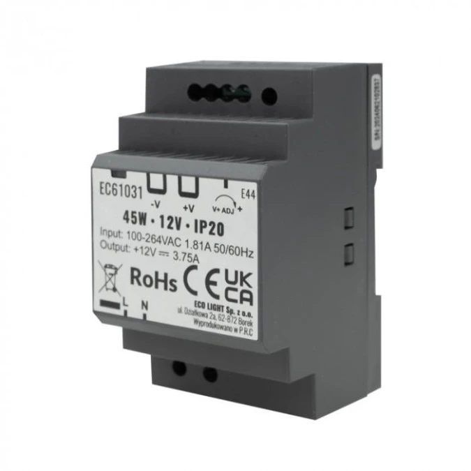 Zasilacz na szynę DIN 12V 45W 3.75A IP20