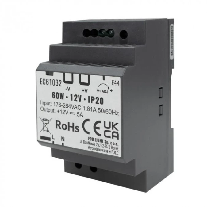 Zasilacz na szynę DIN 12V 60W 5A IP20