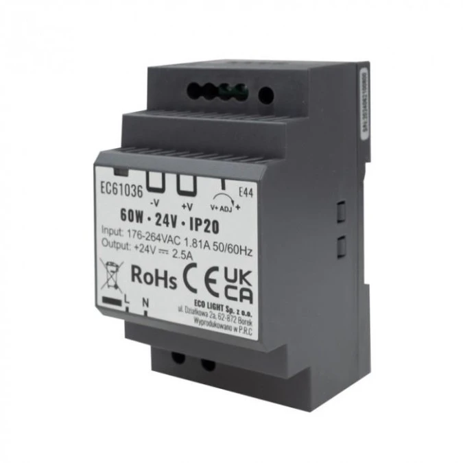 10. Zasilacz na szynę DIN 24V 60W 2.5A IP20 60.00