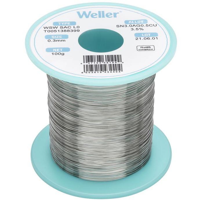 8. Solder, lead-free, SAC (Sn3.0Ag0.5Cu3.5%), Ø 0.3 mm, 100 g, WSW SAC L0 0,3MM 100G 177.68