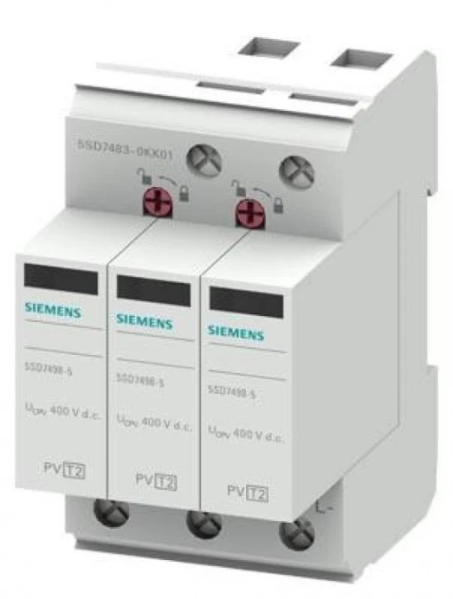 Ogranicznik przepięć Typ 2 do instalacji fotowoltaicznych 3P 1000 V DC Iimp 15kA Imax 40kA SENTRON 5SD7483-0KK02