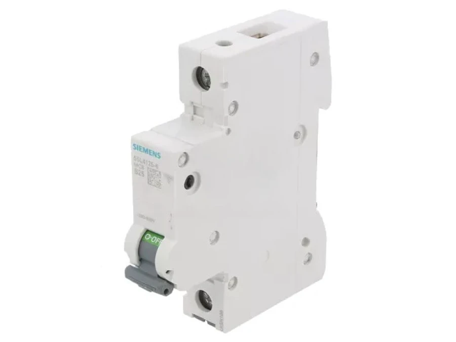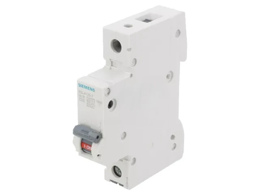 18. Wyłącznik nadprądowy MCB, Typ B, 1-biegunowy, 25A, 400V, 72V, na szynę DIN, Siemens 5SL4125-6, 5SL4 104.61