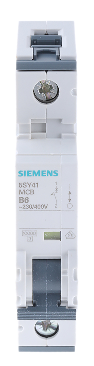 10. Wyłącznik nadprądowy MCB, Typ B, 1-biegunowy, 6A, 400V, na szynę DIN, Siemens, 5SY4 102.40