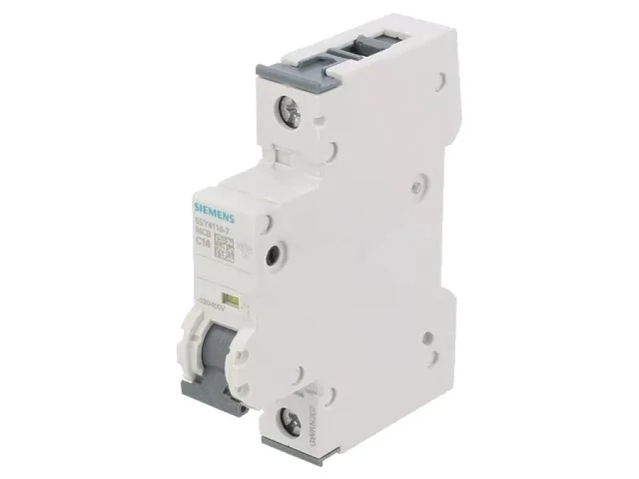13. Wyłącznik nadprądowy MCB, Typ B, 1-biegunowy, 1.6A, 400V, 60V, Siemens, 5SY4 105.16