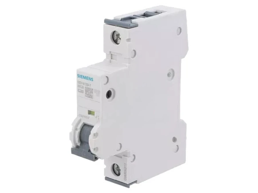 6. Wyłącznik nadprądowy MCB, Typ B, 1-biegunowy, 20A, 400V, na szynę DIN, Siemens, 5SY4 92.99