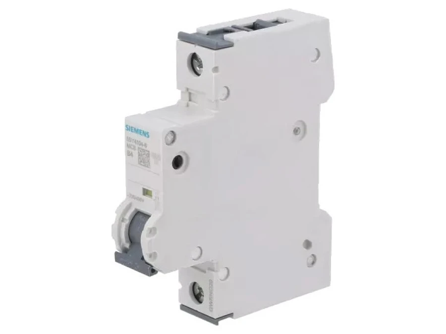 14. Wyłącznik nadprądowy MCB, Typ B, 1-biegunowy, 4A, na szynę DIN, Siemens, 5SY4 106.22