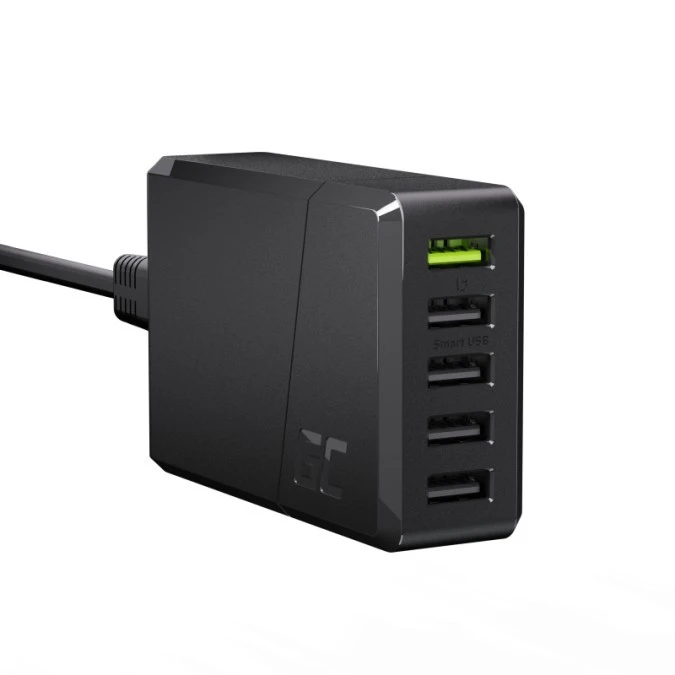 Green Cell Ładowarka sieciowa 5x USB A [1x Ultra Charge 18W (12V / 1,5A) + 4x Smart Charge 12W (5V / 2,4A)] 52W czarna