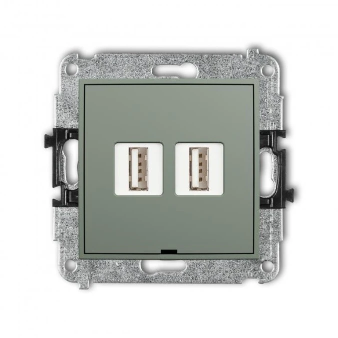 6. MINI Mechanizm gniazda podwójnego 2xUSB A-A 2.0, bez pola opisowego szałwiowy 61MGUSBBO-2 121.49