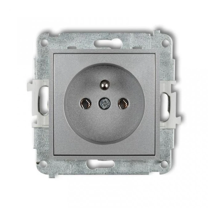ICON Mechanizm gniazda pojedynczego z uziemieniem SCHUKO 2P+Z z przesłonami srebrny metalik 7IGP-1sp KARLIK