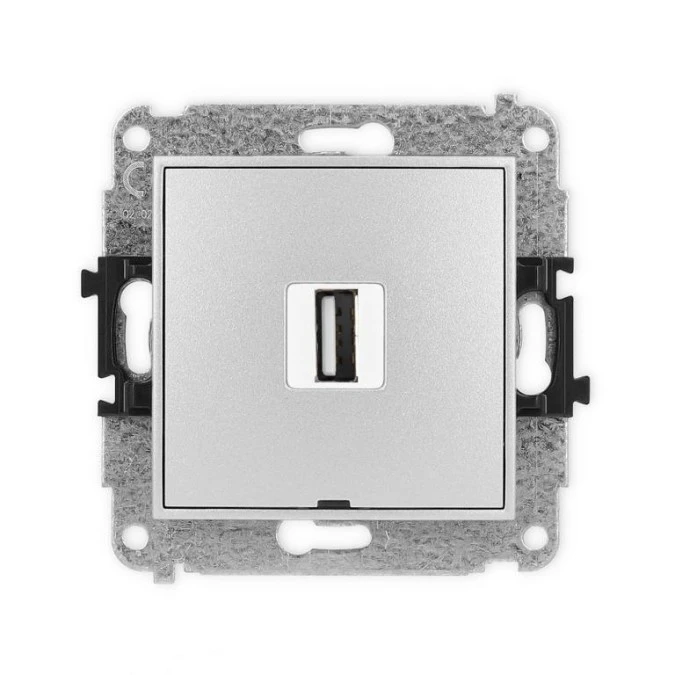 1. ICON Mechanizm gniazda pojedynczego USB A-A 2.0, bez pola opisowego srebrny metalik 7IGUSBBO-1 75.23