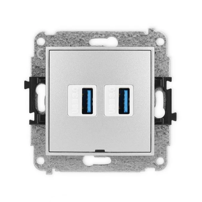 ICON Mechanizm gniazda podwójnego 2xUSB A-A 3.0, bez pola opisowego srebrny metalik 7IGUSBBO-6