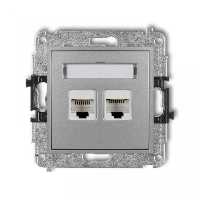 MINI Gniazdo komputerowe podwójne 2xRJ45 kat.5e 8-stykowy srebrny metalik 7MGK-2 KARLIK