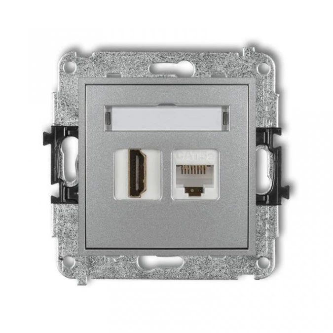MINI Gniazdo telefoniczne 1xRJ11 + gniazdo komputerowe 1xRJ45 kat.5e 8-stykowy beznarzędziowe srebrny metalik 7MGTK KARLIK
