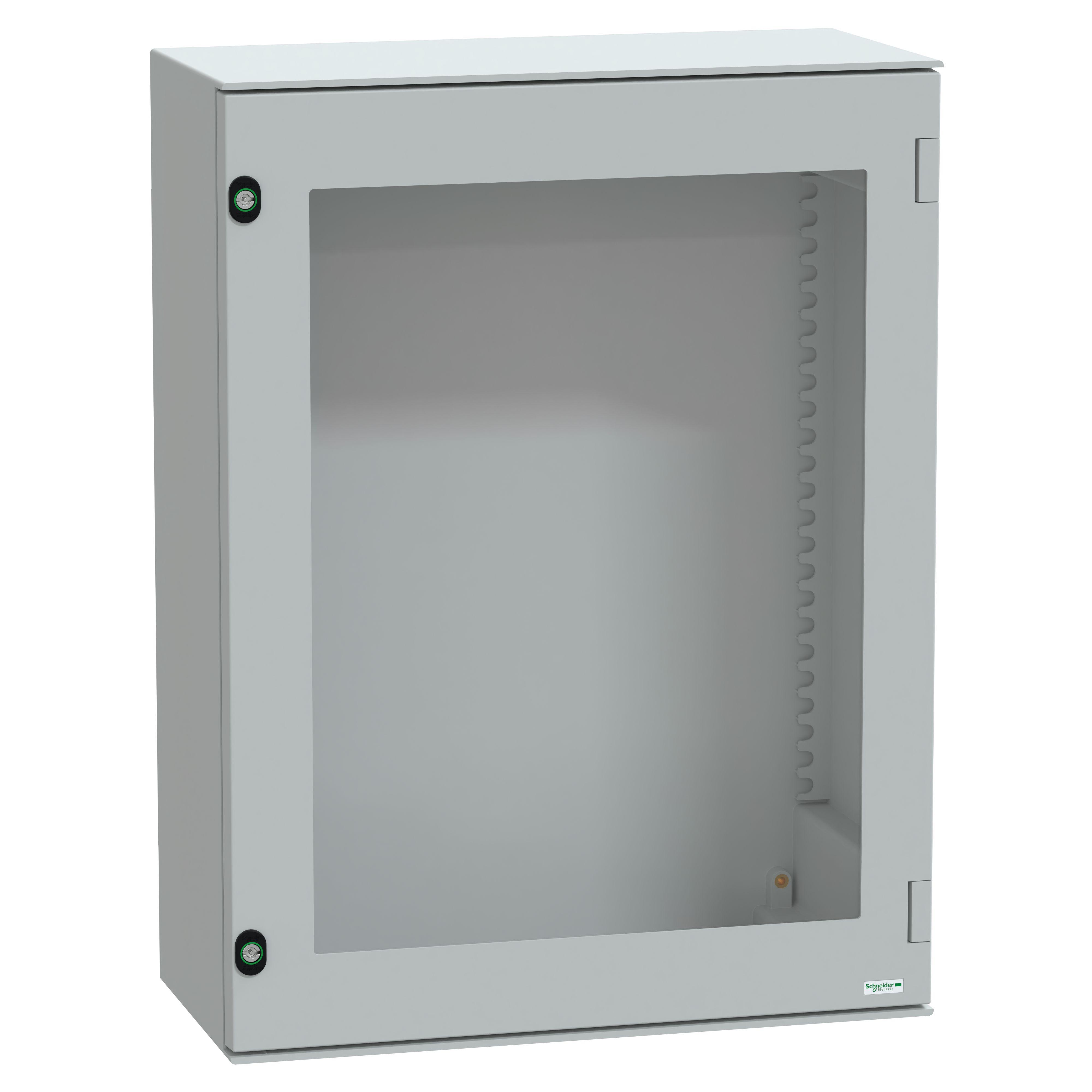Szafka ścienna rozdzielcza 847 mm 636 mm 300mm Poliester Schneider Electric, z drzwiami przezroczystymi RAL 7035