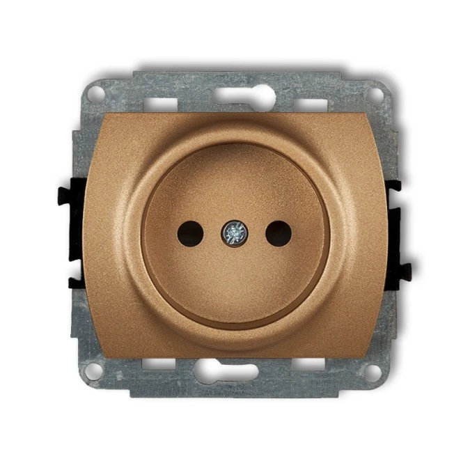 TREND Gniazdo pojedyncze bez uziemienia (przesłony torów prądowych) złoty metalik 8GP-1p KARLIK