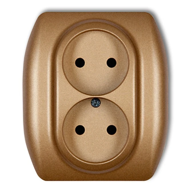 TREND Gniazdo podwójne bez uziemienia (przesłony torów prądowych) złoty metalik 8GP-2p KARLIK