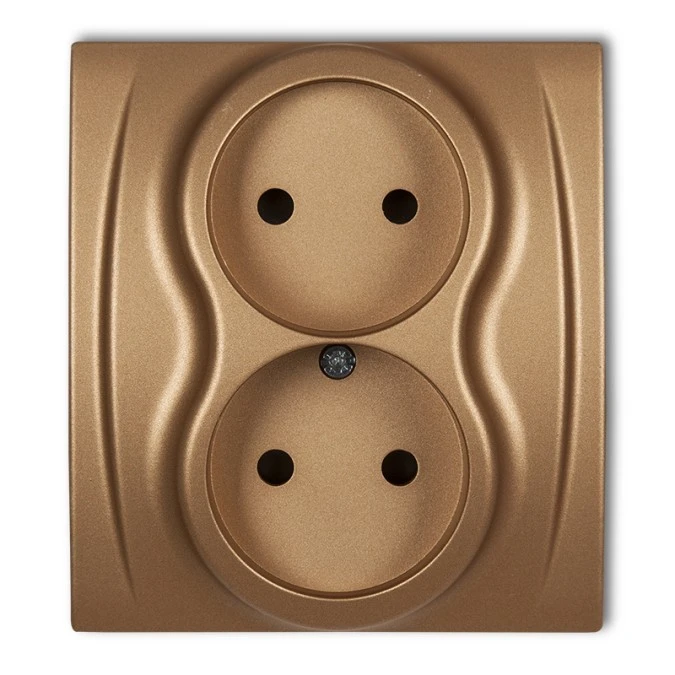 LOGO Gniazdo podwójne bez uziemienia (przesłony torów prądowych) złoty metalik 8LGP-2p KARLIK