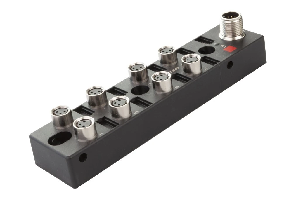 8. Rozdzielacz 27x130x31mm 8 x M8 3-pinowy 10-30V DC M12 12-pinowy wyświetlacz LED IP67 VK001102 514.29