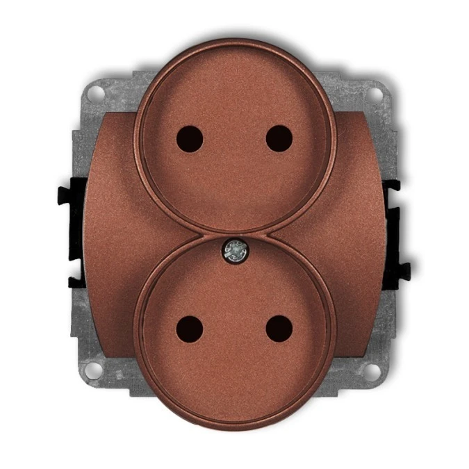 TREND Gniazdo podwójne z uziemieniem do ramki poziomej (przesłony torów prądowych) brązowy metalik 9GPR-2zp KARLIK