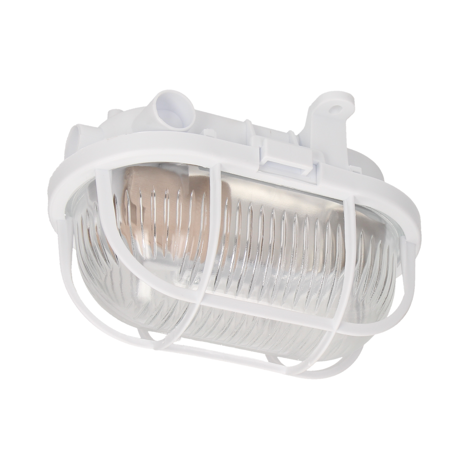 Oprawa kanałowa OVAL-7040T/P, E27, 60W, biała-polipropylen, klosz przeźroczysty-szkło, IP54, siatka plastikowa A1110