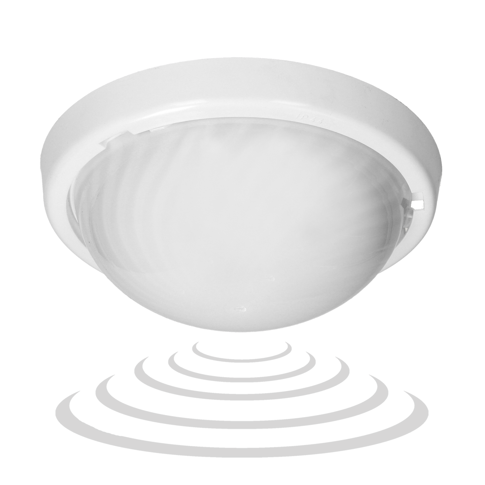 7070T/MAT-ALFA/MS/PL. oprawa oświetleniowa z mikrofalowym czujnikiem ruchu. 75W. E27. IP44. IK10. poliwęglan mleczny A2210-MP-HF