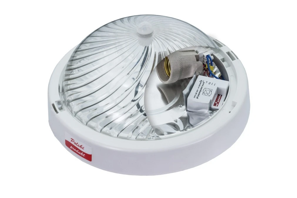 12. Oprawa ALFA, E27 z czujnikiem ruchu PIR, 75W, biała-polipropylen, klosz przeźroczysty-poliwęglan, IP44, IK10 A2210-P-PIR 62.00