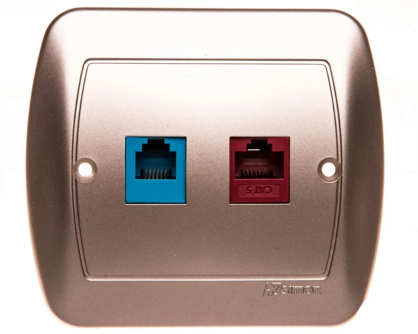 9. Simon Akord Gniazdo teleinformatyczne RJ12 + RJ45 kat. 5 dla RJ45 aluminiowy A5T/26 112.88