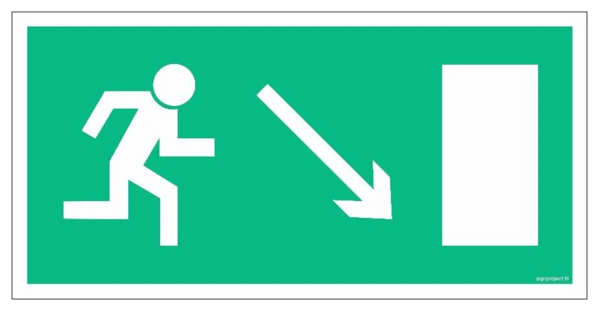 10. ZNAK - AC013 Wyjście ewakuacyjne w prawo w dół 30 x 15 cm TS - Płyta TD foto. 14.02
