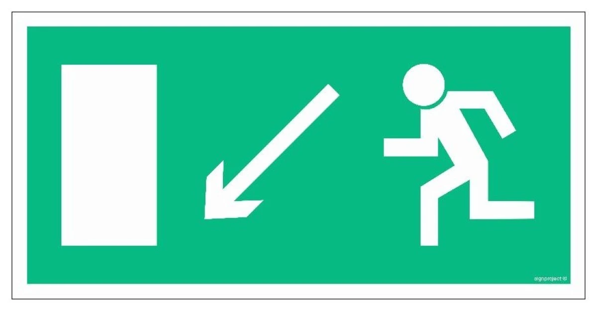 12. ZNAK - AC014 Wyjście ewakuacyjne w lewo w dół 30 x 15 cm TS - Płyta TD foto. 14.02