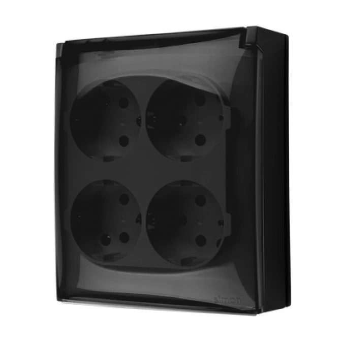 Simon Aquaclick Gniazdo IP44, Schuko, 4-krotne, szybkozłącza, klapka transparentna czarny ACGSZ4C/49A