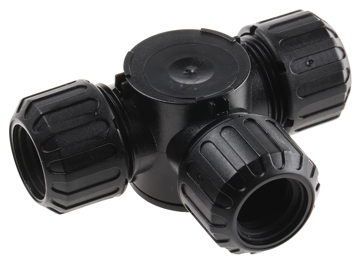 4. Łącznik do kanałów kablowych Adaptaflex gwint M16 16mm Trójnik Nylon 66 IP66, IP67 Czarny 61.46