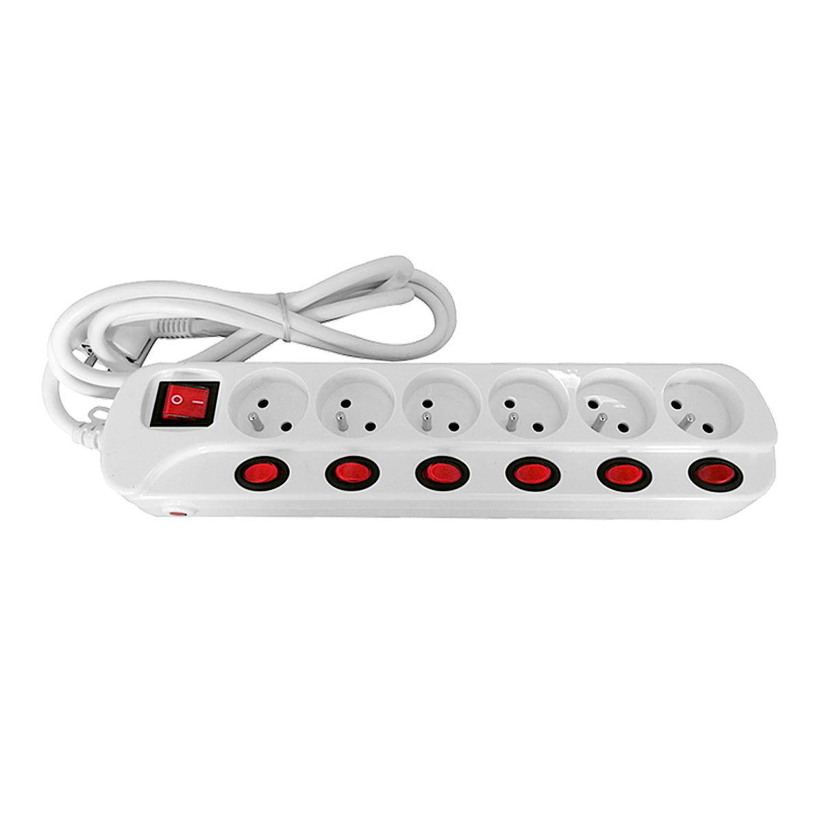 Listwa zasilająca "Multiswitch". 6 gniazd 2P+Z. kabel 3x1.0mm2. długość 1.5m. z wyłącznikami podświetlanymi: głównym... OR-AE-13