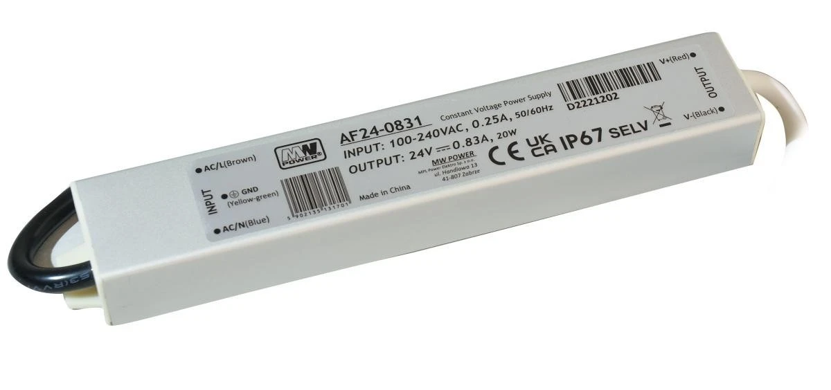 2. Zasilacz LED 20W 24V 0,83A IP67 metalowa obudowa AF24-0831 MW POWER 23.26