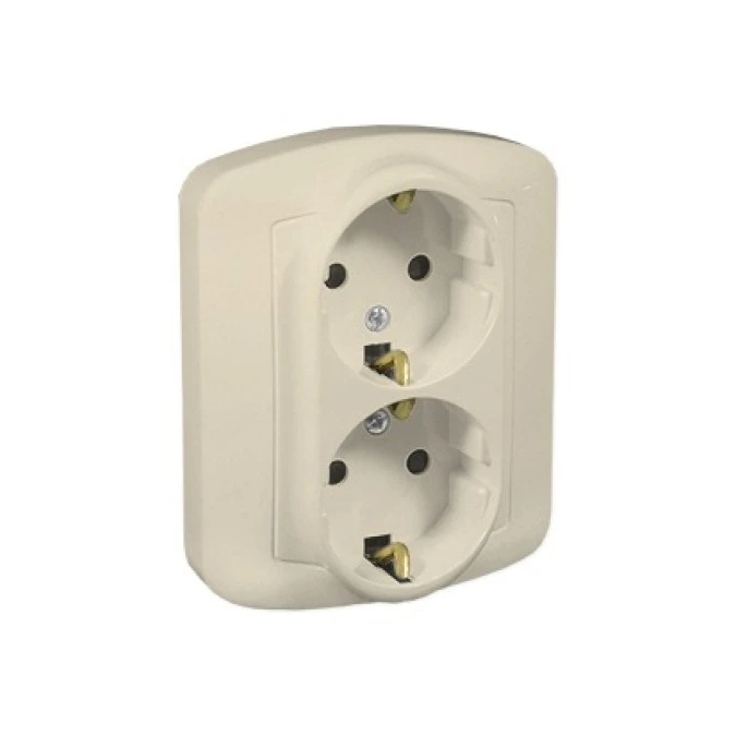 5. AKORD Gniazdo podwójne z uziemieniem schuko beżowe z przesłonami torów prądowych AGSz2z/12 KONTAKT SIMON 25.62