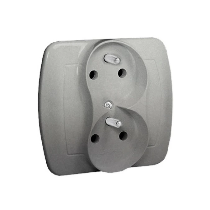 9. AKORD Gniazdo podwójne z uziemieniem aluminiowy metalik z funkcją niezmienności faz zaciski śrubowe AGZ2cz/26 KONTAKT SIMON 27.87