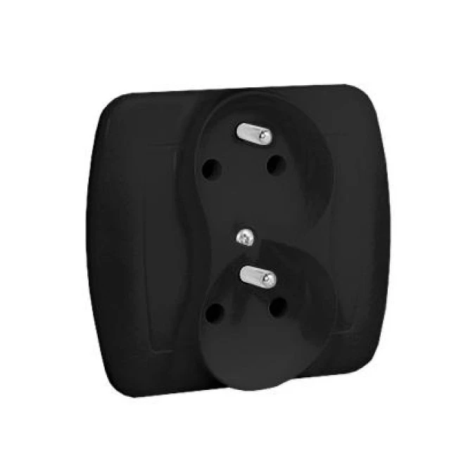 13. Simon Akord Gniazdo wtyczkowe z uziemieniem podwójne, z funkcją niezmienności faz, 16A, 250V, zaciski śrubowe czarny AGZ2CZ/49 29.82