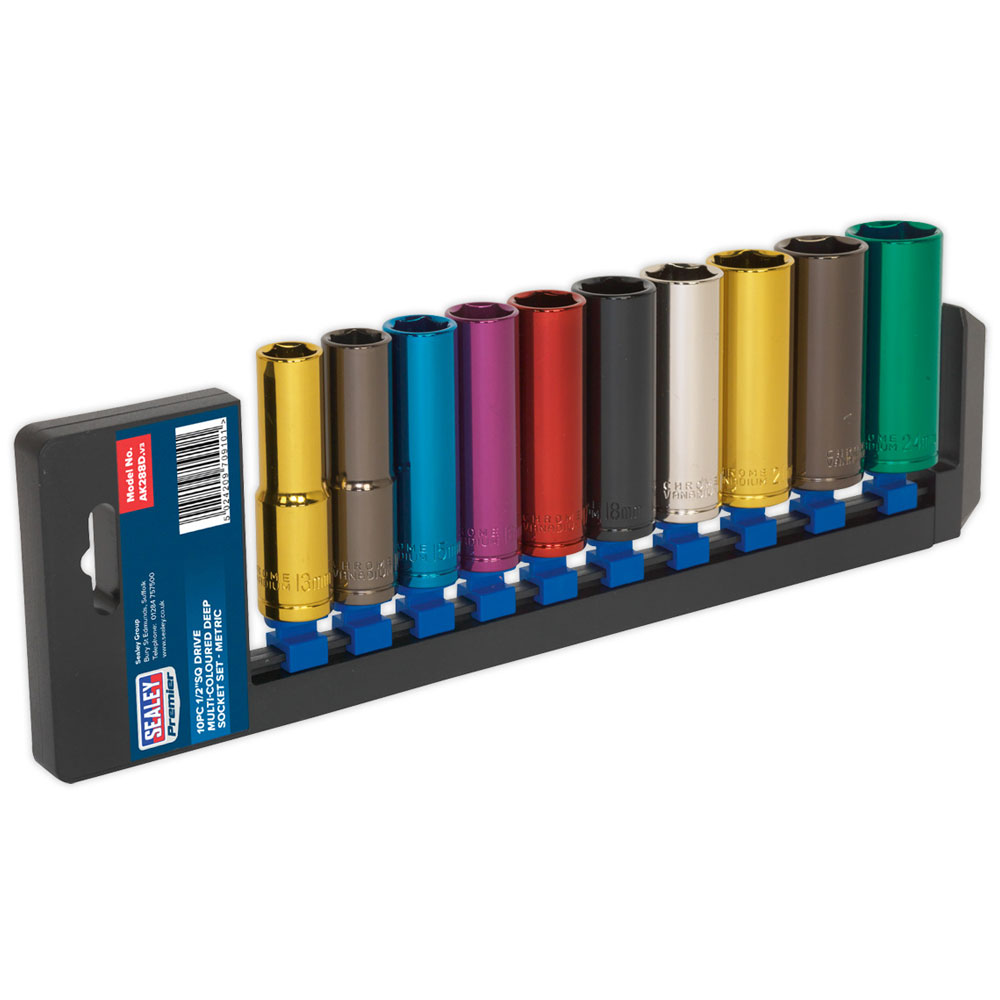 Sealey AK288D Multi-coloured Deep Socket Set 10pc 1/2"sq Drive Metric
