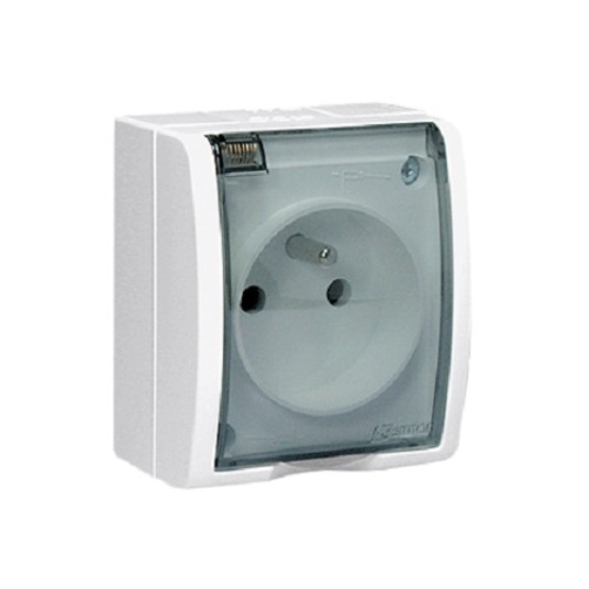 AQUARIUS Gniazdo pojedyncze z uziemieniem bryzgoszczelne IP54 klapka transparentna 16A 250V zaciski śrubowe białe AQGZ1/11A KONT