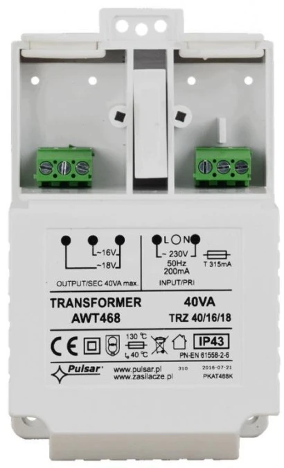 Transformator TRZ 40VA/16V/18V IP43 Pulsar AWT468