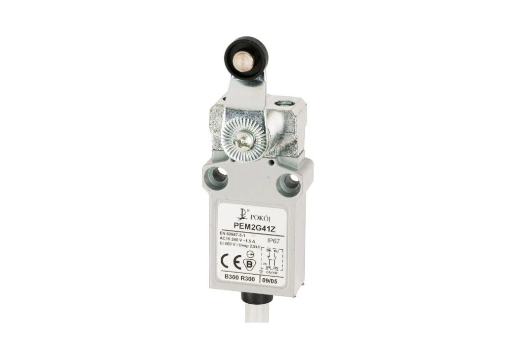 Wyłącznik krańcowy 1R 1Z wolnoprzełączający dźwignia z rolką z tworzywa Ø14 PEM2G41X A37-B92X