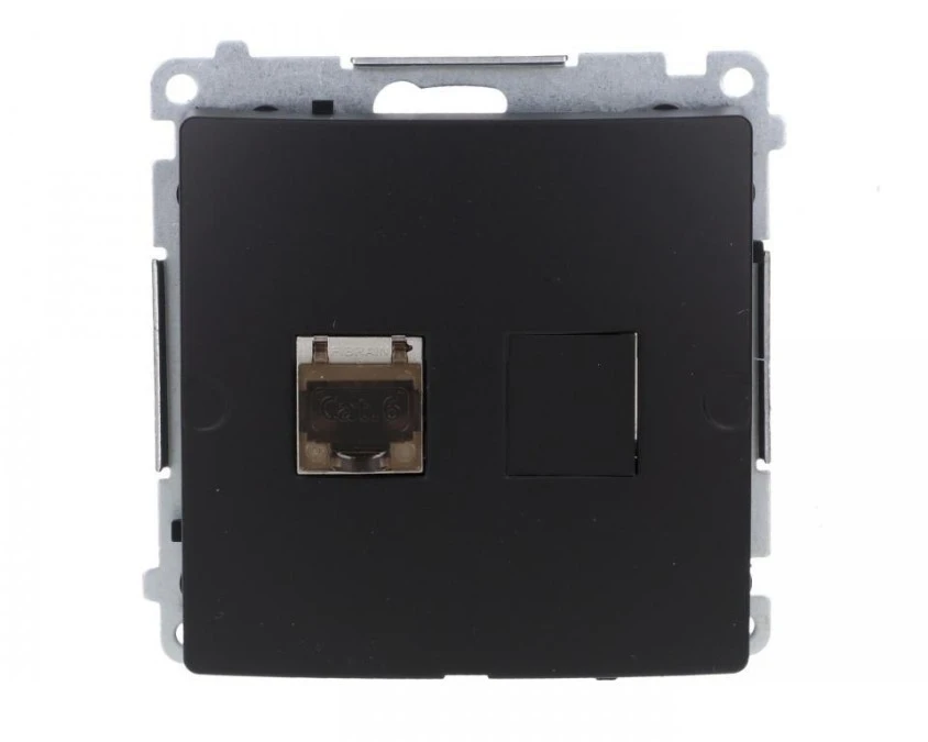 1. SIMON BASIC Gniazdo komputerowe RJ45 kat.6 pojedyncze ekranowane z przesłoną przeciwkurzową (moduł) czekoladowy BM61E.01/47 KONT 71.51