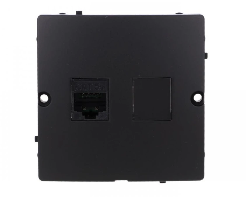 15. Simon Basic Gniazdo komputerowe RJ45 pojedyncze, kategoria 5e (moduł). Montaż gniazda na wkręty do puszki czarny BMF51.02/49 78.56