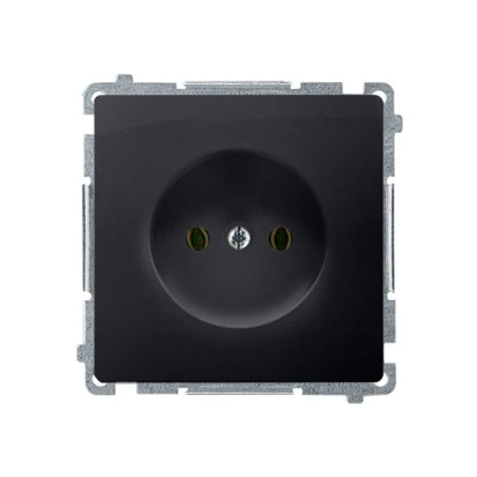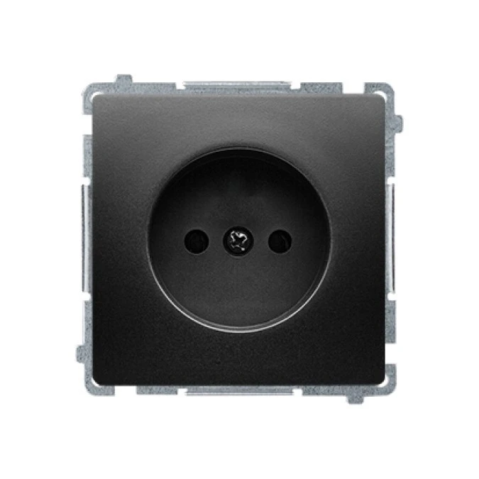 9. Simon Basic Gniazdo wtyczkowe bez uziemienia (moduł), z przesłonami torów prąd. 16A, 250V, zaciski śrubowe czarny BMG1Z.01/49 25.45