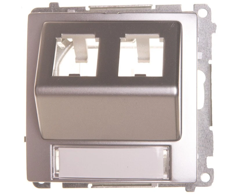 7. SIMON BASIC Pokrywa gniazd teleinformatycznych na wkłady RJ typu: Panduit skośna podwójna z polem opisowym srebrny mat BMGPS2P.0 20.54