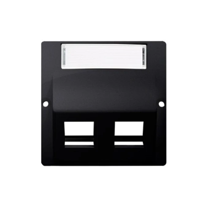 Simon Basic Pokrywa gniazd teleinformatycznych na wkłady RJ typu: Panduit, skośna podwójna z polem opisowym czarny BMGPS2P.02/49