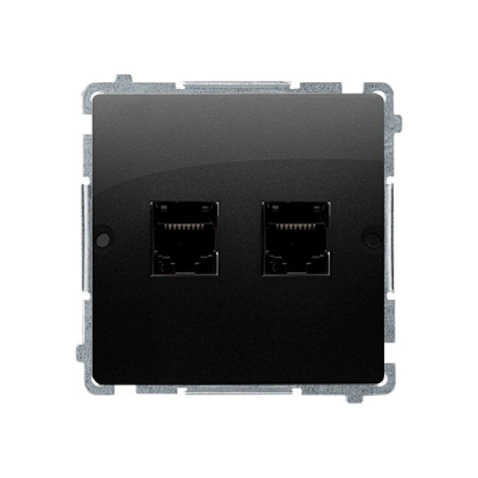 16. Simon Basic Gniazdo telefoniczne RJ12 podwójne (moduł). Montaż gniazda na wkręty do puszki czarny BMT2.02/49 66.44