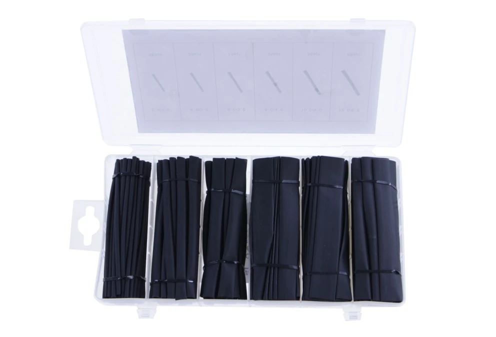 12. Koszulki termokurczliwe 196 sztuk / Zestaw koszulek termokurczliwych / Rura termokurczliwa cienkościenna 2:1 / Czarne / BOX-15 18.01