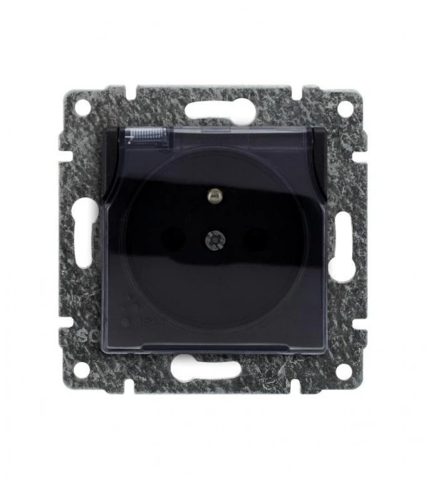 VENA Gniazdo bryzgoszczelne IP44 pojedyncze z uziemieniem z przesłonątorów prądowych bez ramki 2P+Z 16A 250V czarny mat 510939